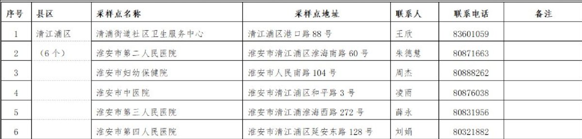 以下为2021清江浦区核酸检测采样点汇总: