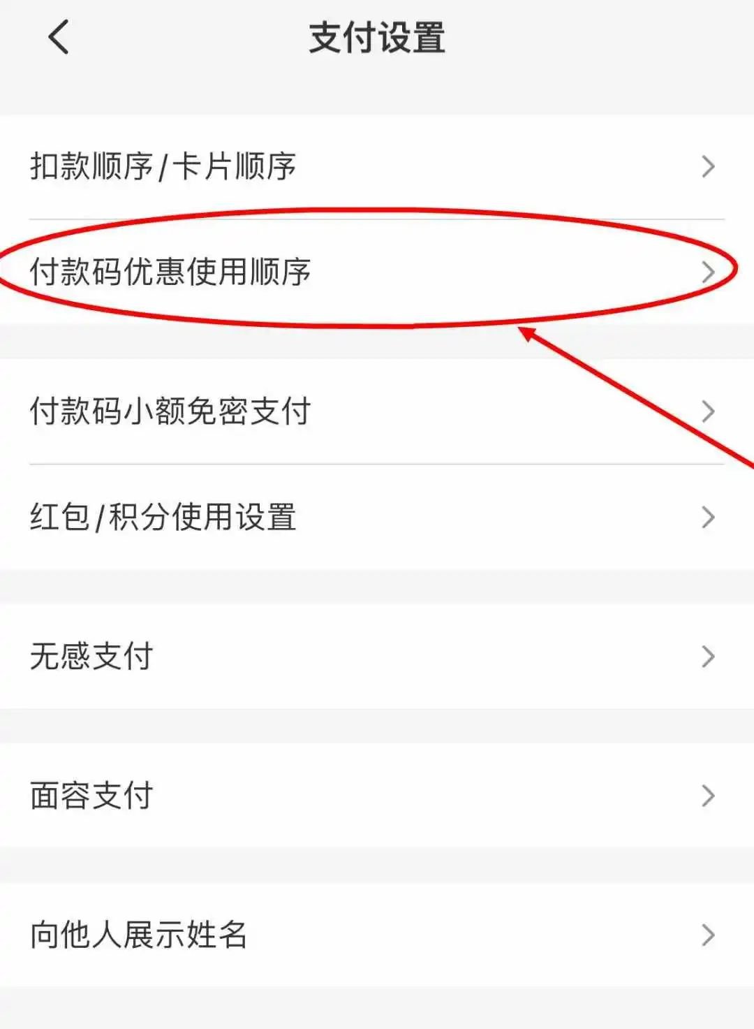 打开云闪付APP【我的】-【设置】图标-【支付设置】-【付款码优惠使用顺序】,详见下图: