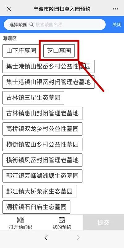 进入预约页面,再点击你想预约的墓园(以预约“芝山墓园”为例子)