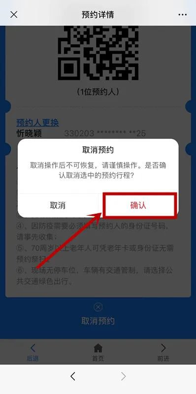 点击页面最下方“取消预约”,随后点击“确定”即可
