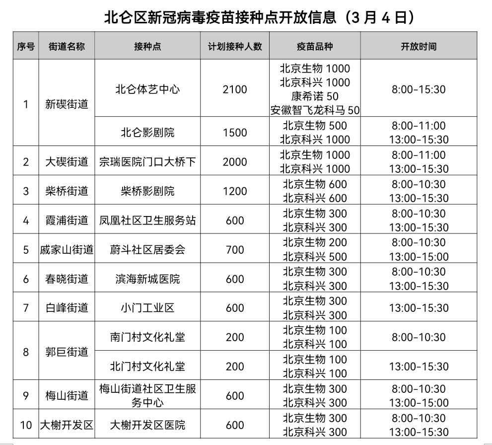 3月4日-3月6日开展新冠疫苗接种服务,具体信息如下:
