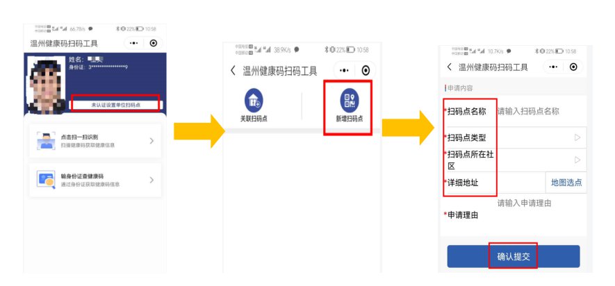 各场所管理人员可以在微信或支付宝找到“温州健康码扫码工具”小程序,在线自主申报,经乡镇街道或社区审批后,即可生成“场所码”。具体操作步骤如下: