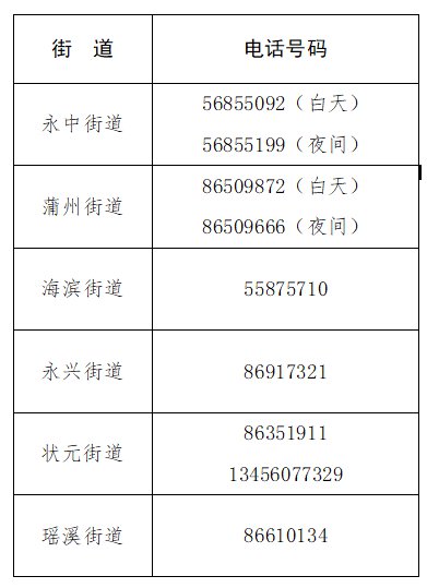 龙湾区群众如遇疑问可拨打辖区街道防控热线电话咨询