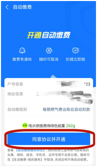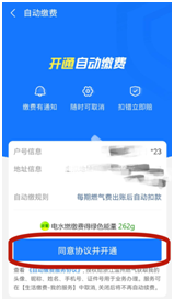 第五步:进入开通自动缴费界面,点击“同意协议并开通”,验证支付密码即可开通成功。