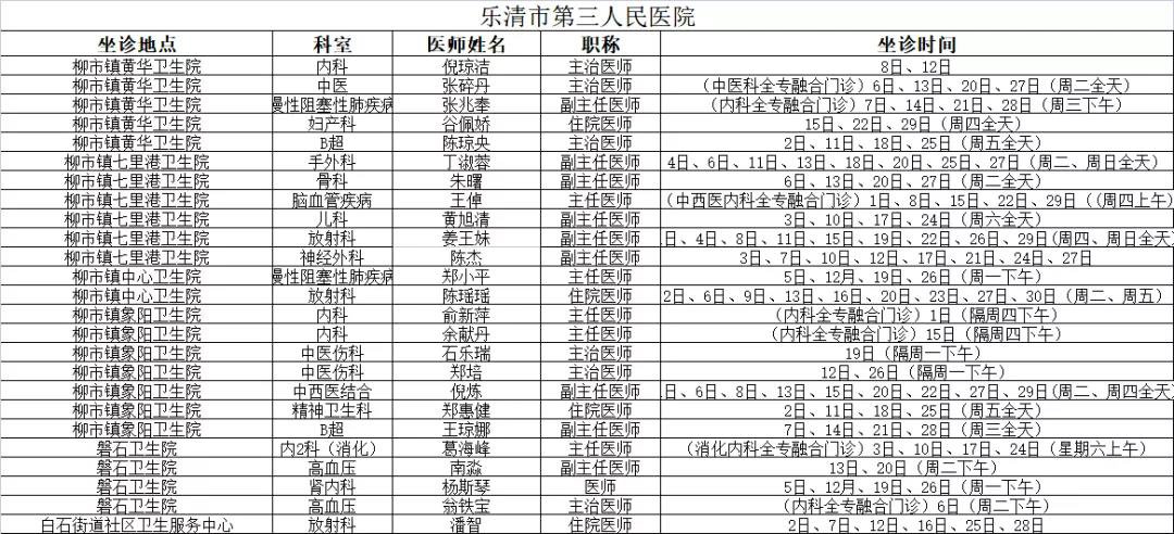 2021年4月份市级医院医生下沉安排表
