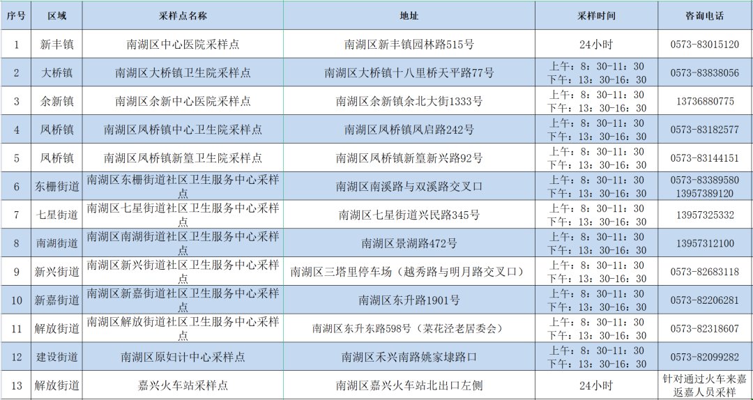 嘉兴市南湖区新冠病毒核酸“愿检尽检”采样点