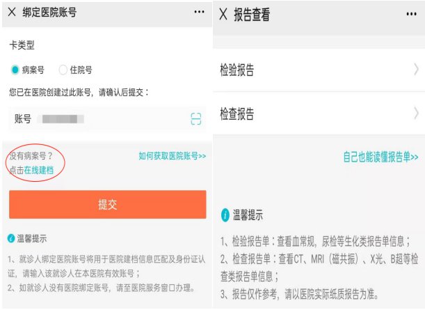 ·填写相关信息并提交。之后需绑定医院账号,开单以后可自动跳出医院病案号,选择绑定即可。如有多个医院的病案号请核对开单的小票上的病历号选择正确。