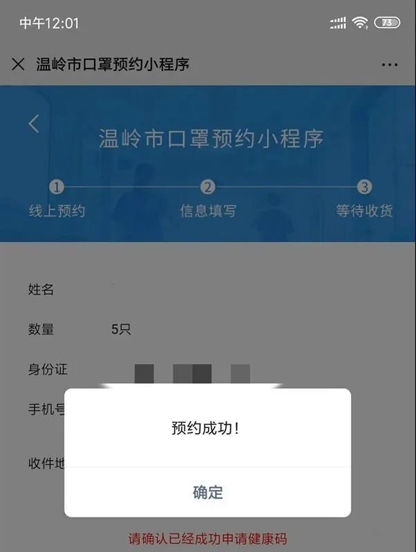 经健康码数据比对后,口罩成功预约者3989人。另有9人,所填地址非温岭市域内根据公告要求,不予投递。需自行联系邮政更改收货地址,邮政客服电话:0576-86142597;