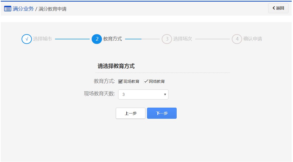 在该步骤,用户已申请成功,请在规定的时间内参加相应的教育场次完成满分教育。