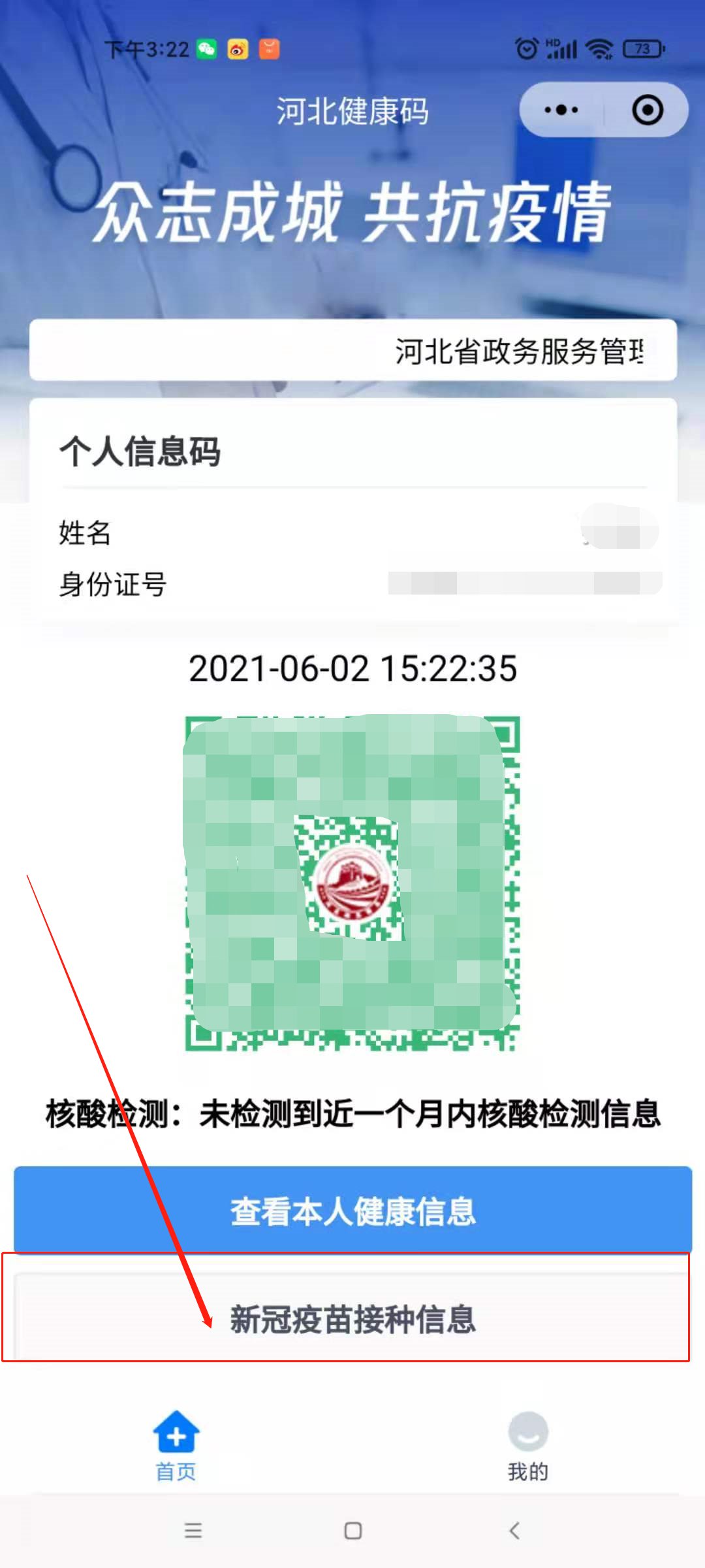 2.通过微信搜索小程序“河北健康码”,点击“新冠疫苗接种信息”,即可获取个人接种记录。