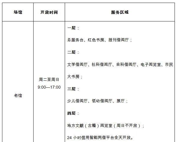 一、开放时间及服务区域