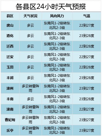 唐山市气象台8月25日下午发布全市天气预报