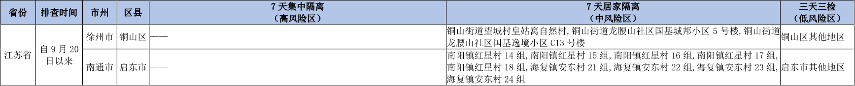 1、有徐州市、南通市高风险区 7 天旅居史的人员