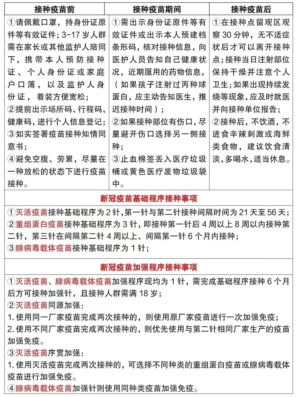 (注:新冠疫苗具体接种事项请以当日所填写新冠疫苗接种知情同意书内容为准。)