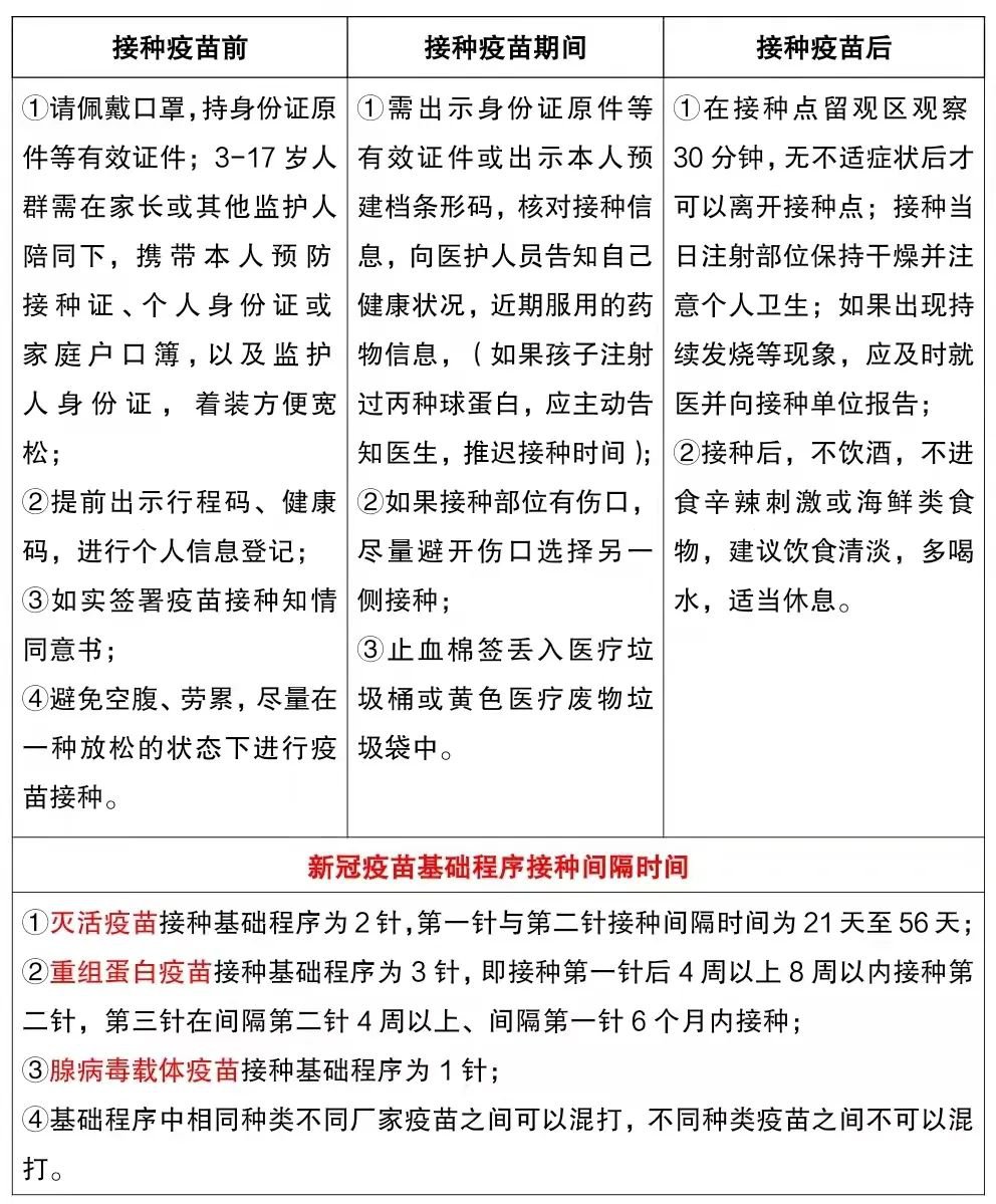 接种时间:早上8:00—12:00、下午14:00—17:00,请需要接种者携带身份证,全程佩戴好口罩到院接种。为了节省您的时间,请您有序排队。