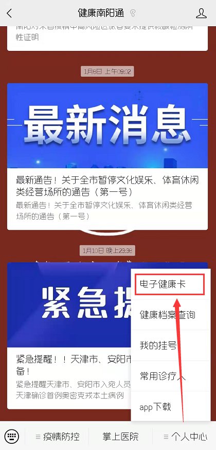 使用微信搜索公众号“健康南阳通”或扫描“健康南阳通”二维码关注;