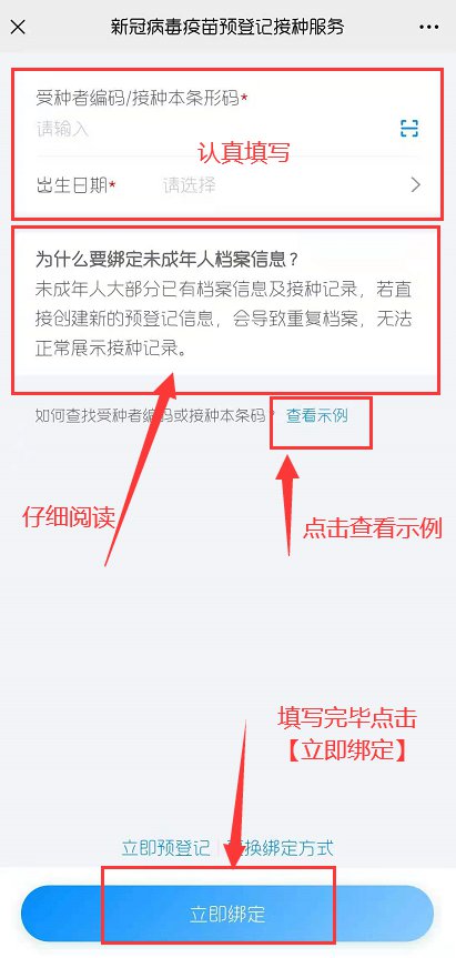第一种:按照提示输入信息,输入完毕点击【立即绑定】。可查看示例。
