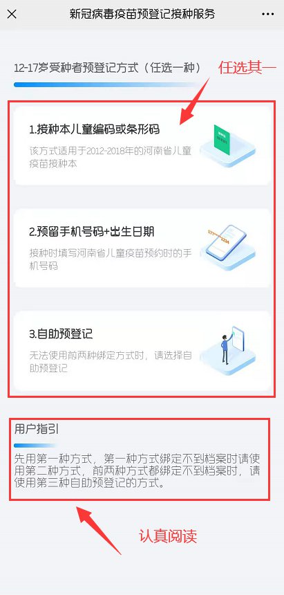 南阳市12-17岁未成年人新冠疫苗接种预建档步骤