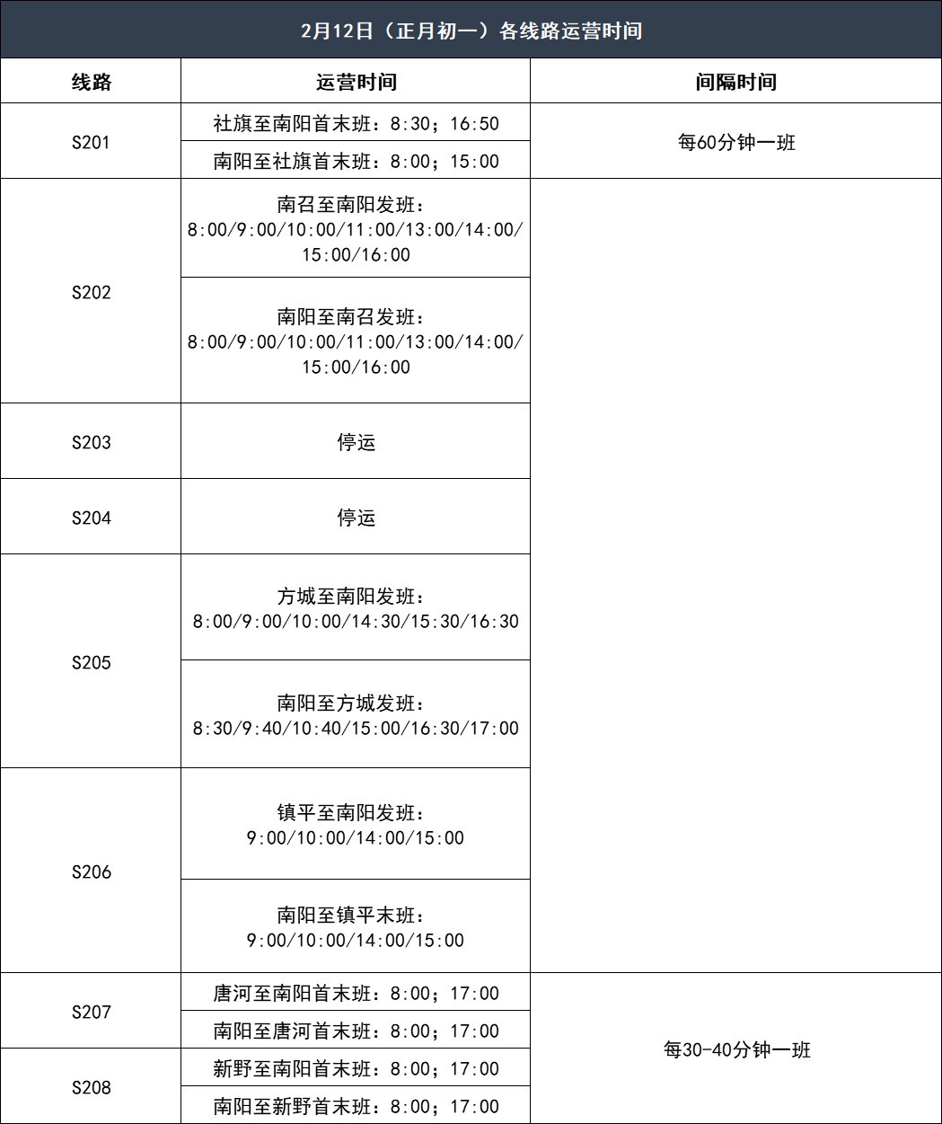2月11日(腊月三十)上午各线路运营正常,2月14日(正月初三)各线路恢复正常。