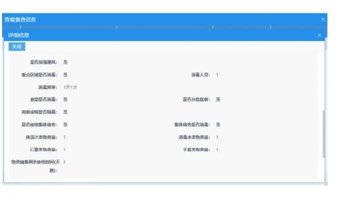 7.查看已通过审核复工复产的企业督查详情,包括企业,上报的防控信息和政府部门的督查信息。