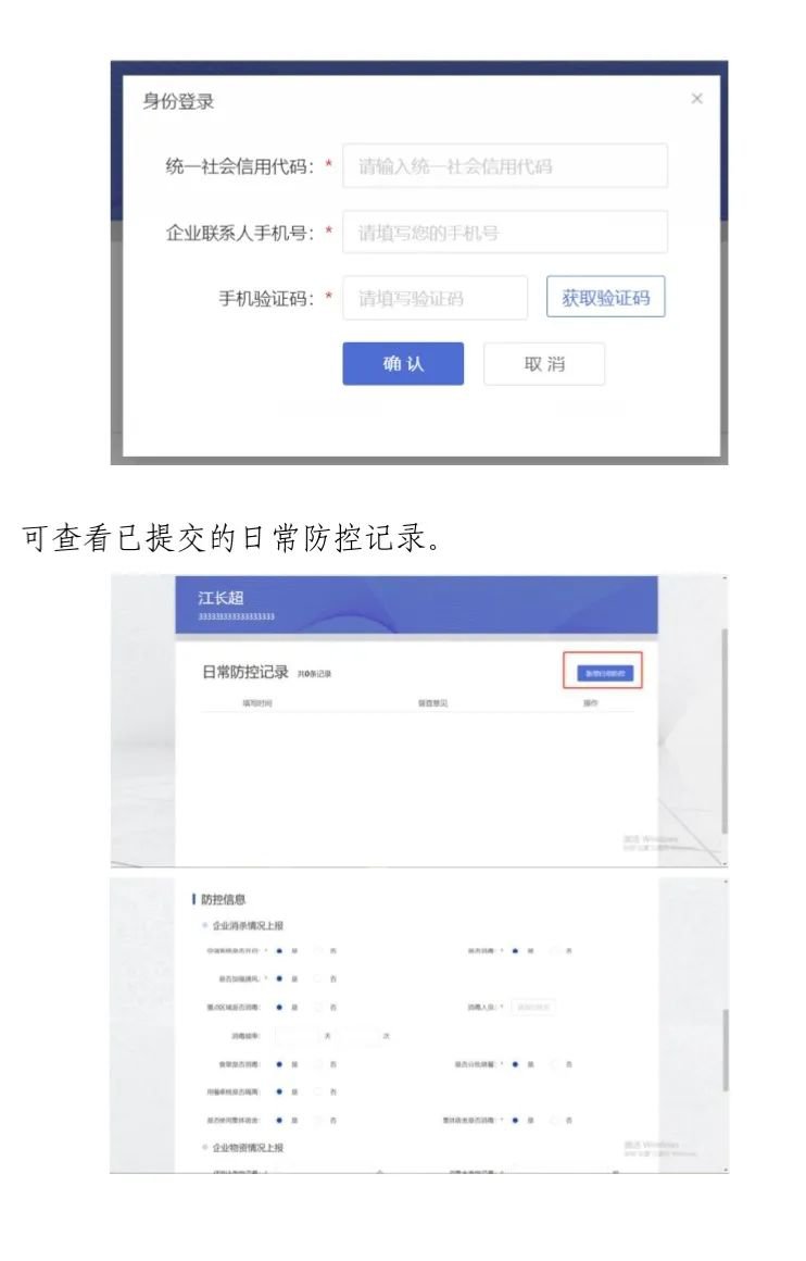 6.日常防控企业申请复工审核通过后,需每日上报杀毒情况物资使用和储备情况、员工健康情况等日常防控信息。可查看已提交的日常防控记录。