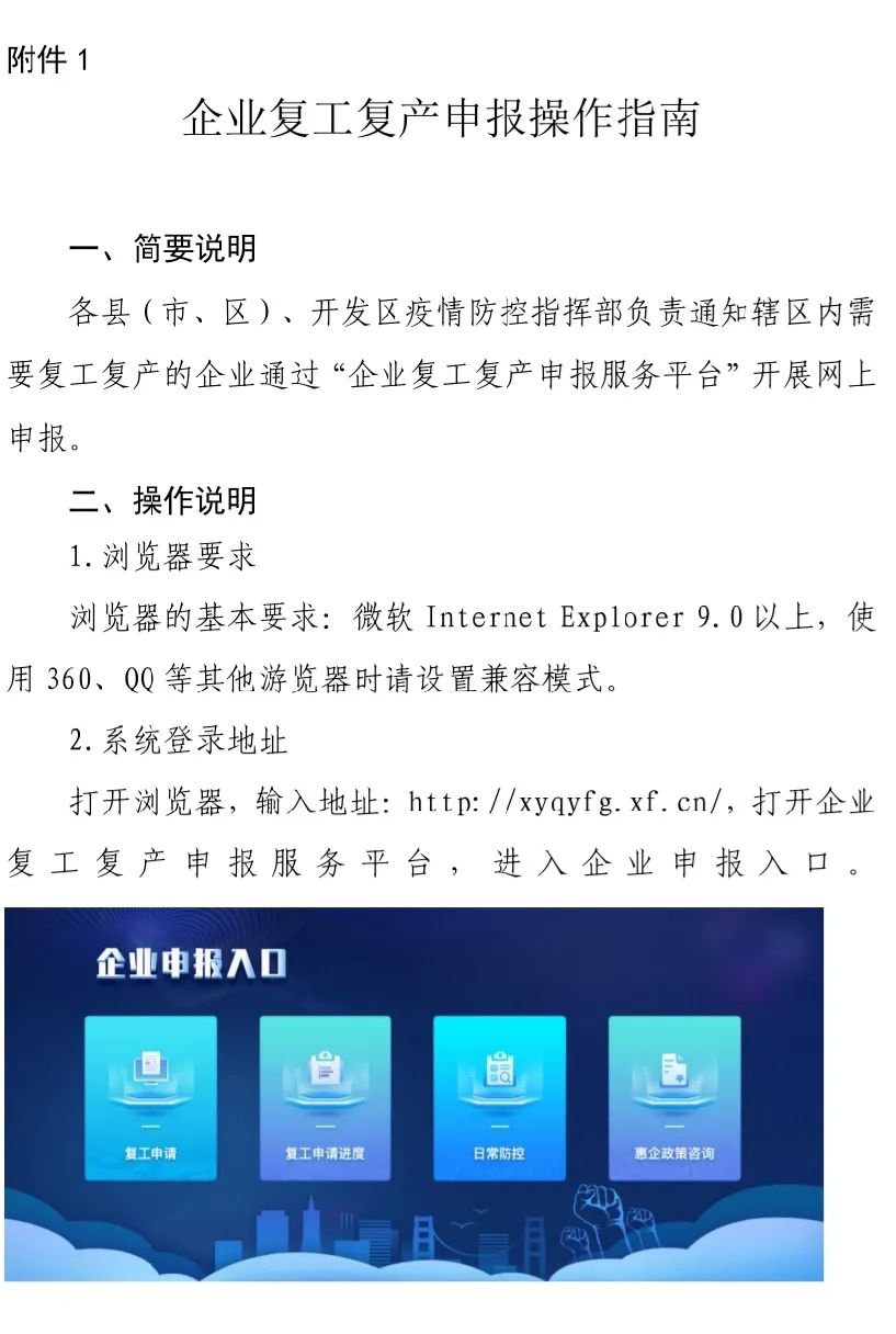 为认真落实党中央、国务院关于统筹推进疫情防控和经济社会发展的决策部署,在确保疫情防控到位的前提下,通过深化“放管服”改革,为企业提供便利服务,精准稳妥推进企业复工复产,现就使用“襄阳市企业复工复产服务平台”开展企业复工复产申报和备案审批有关事项通知如下: