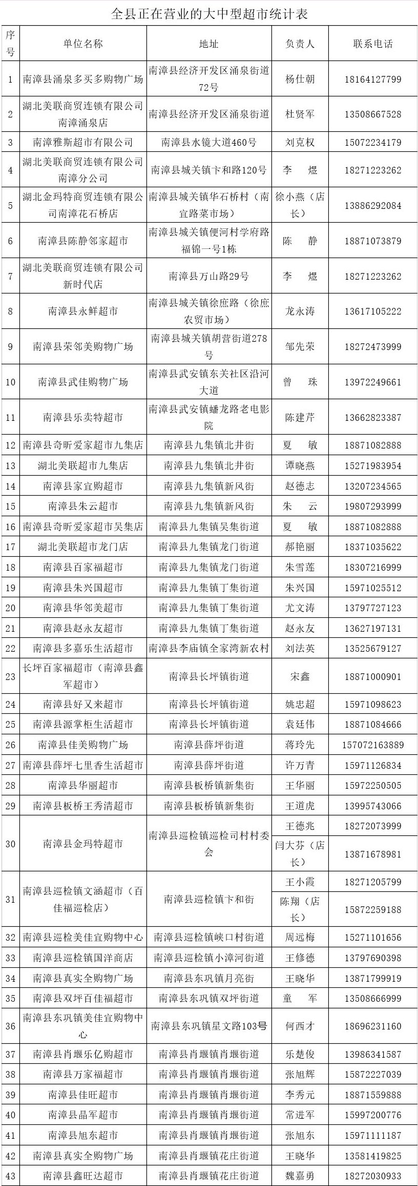 为了在防控疫情的同时保证市场供应,方便百姓生活,经各镇(区)政府(管委会)研究申报,批准部分具备经营条件的超市恢复营业或继续营业,营业时间统一调整为上午9时至下午18时。现将名单公布如下: