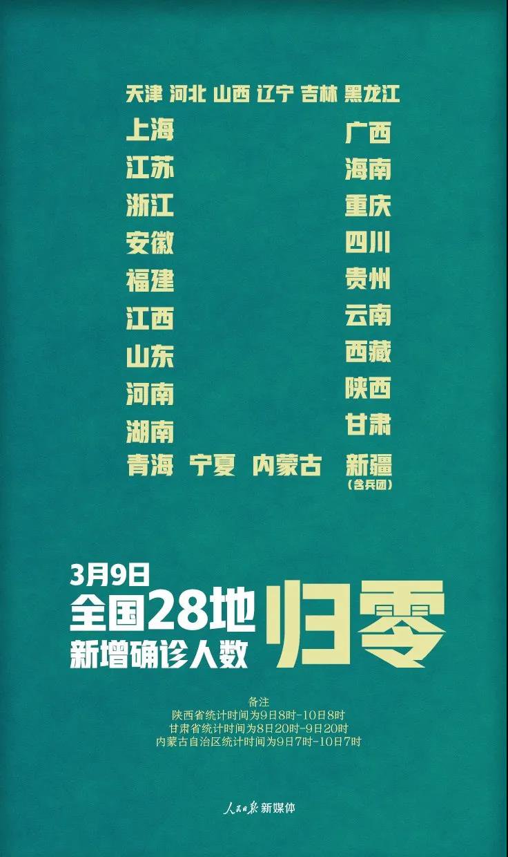 3月9日,全市新增确诊病例数为零;