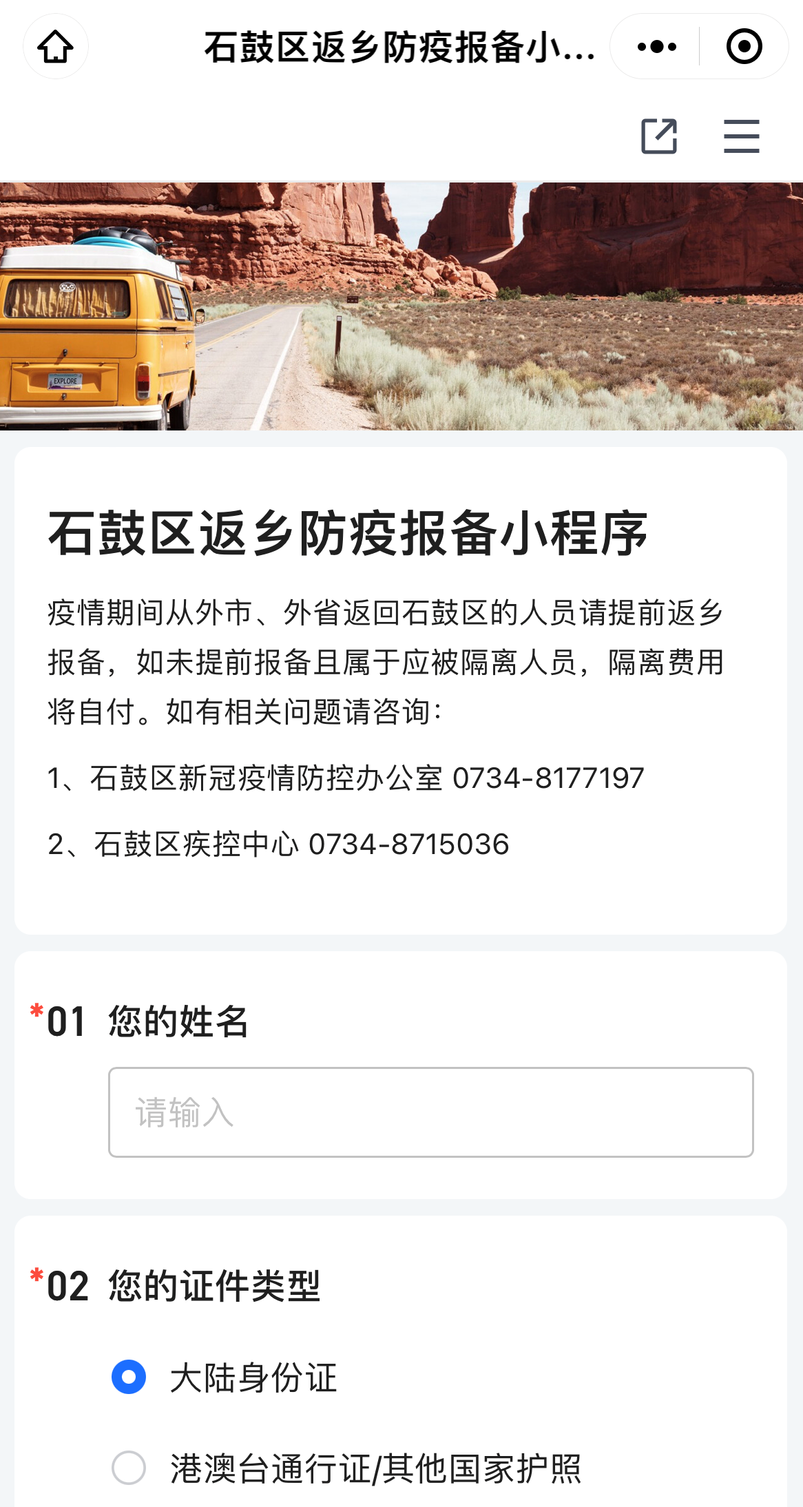 方式一:进入“石鼓区疫情防控微信申报”小程序报备