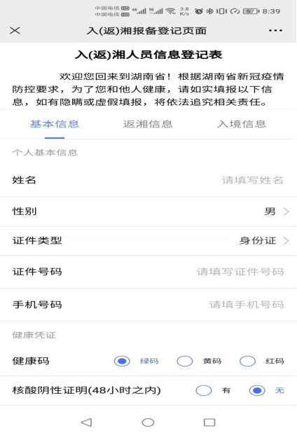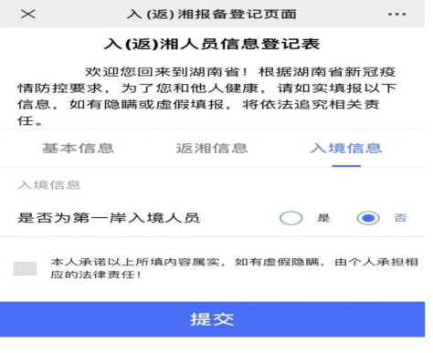 5、进入“返湘信息”界面,按要求填写,并点击下一步。