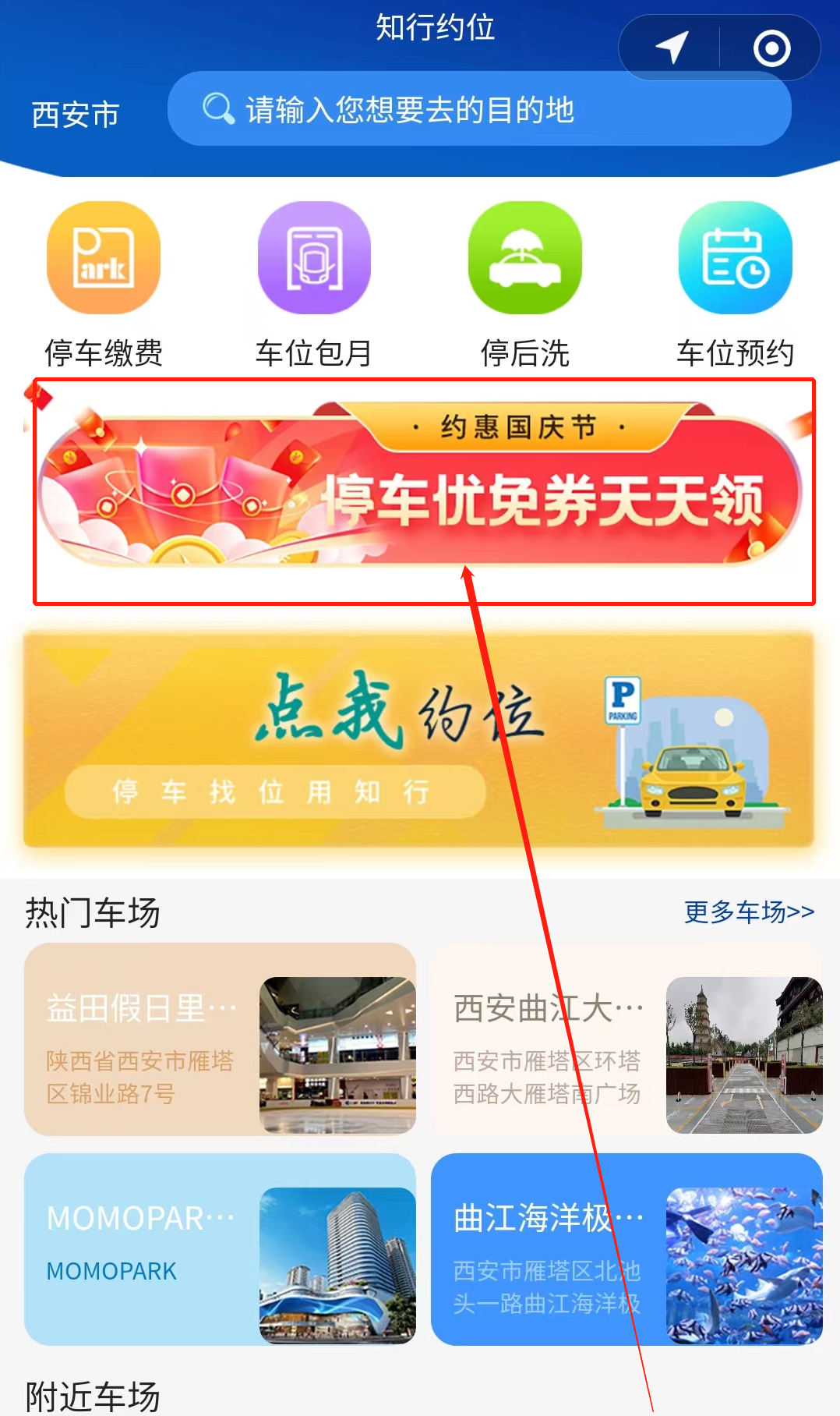 四、停车券领取和使用:每次可领取“2小时新人停车券”和“1小时停车优免券”各一张;活动券不可赠予,未使用的活动券过期作废,请您领取后尽快通过知行约位APP或小程序使用核销;