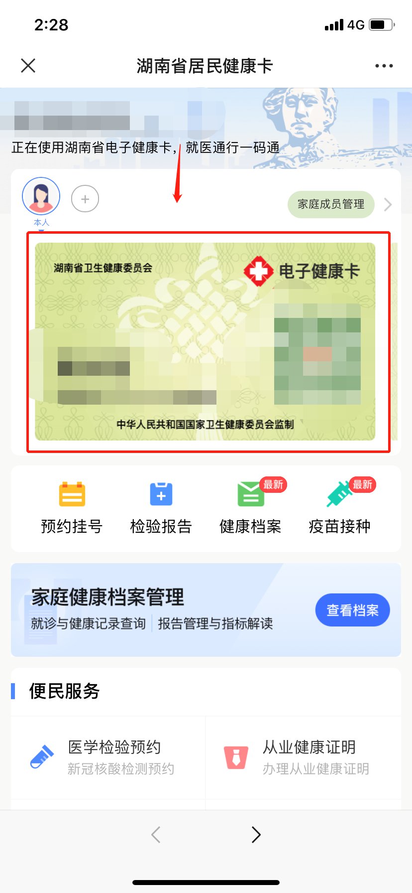1、搜索关注“湖南省居民健康卡”(点击进入传送通道)
