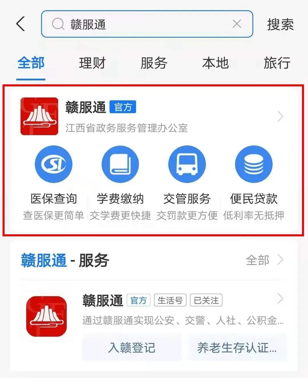 1.支付宝搜索“赣服通”或应用市场下载“赣服通”APP,进入平台。