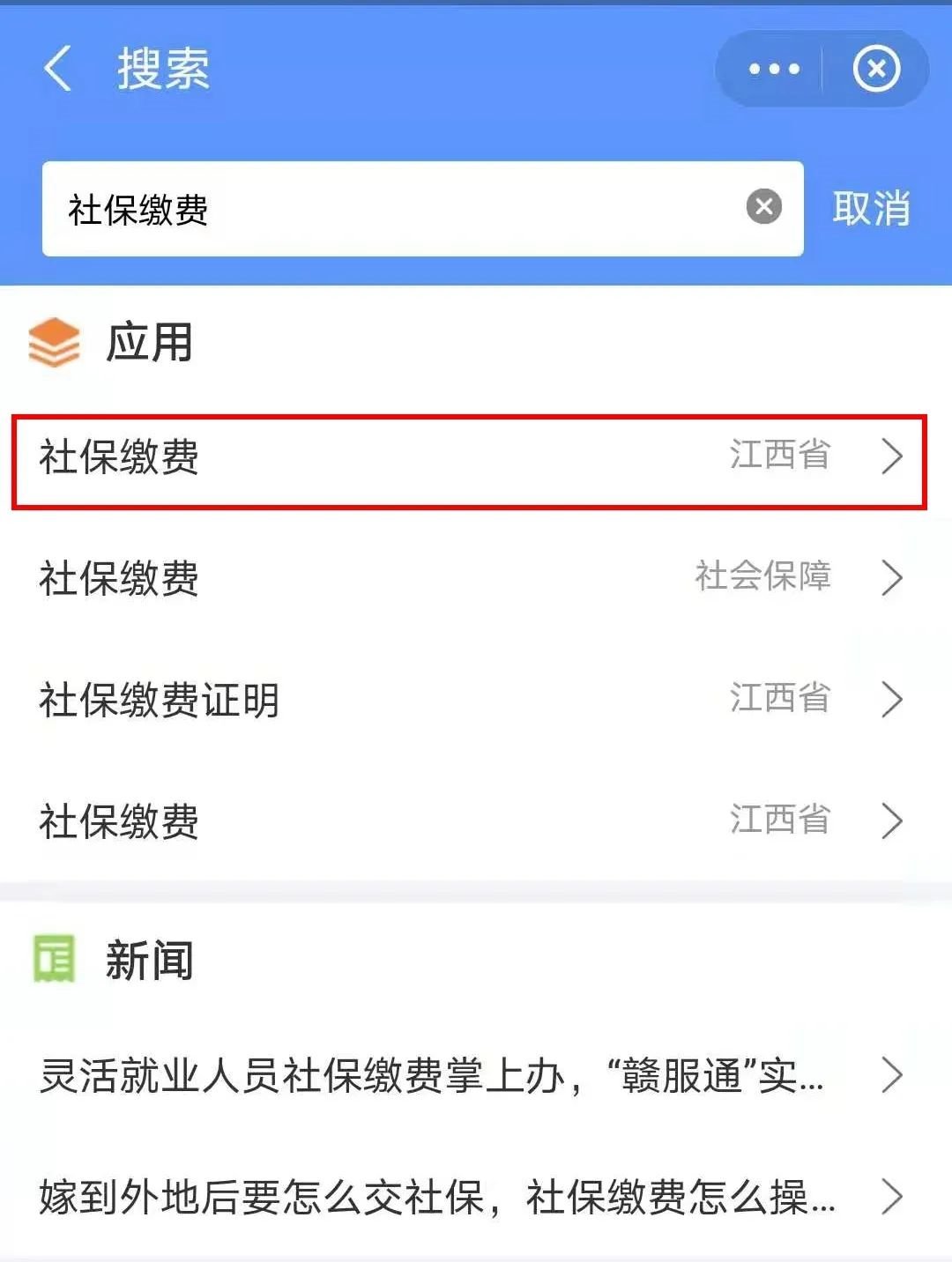 2.搜索社保缴费,点击带江西省字样的服务,选择灵活就业缴费服务。