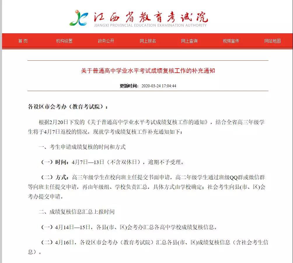 根据2月20日下发的《关于普通高中学业水平考试成绩复核工作的通知》,结合全省高三年级学生将于4月7日返校的情况,现就学考成绩复核工作补充通知如下: