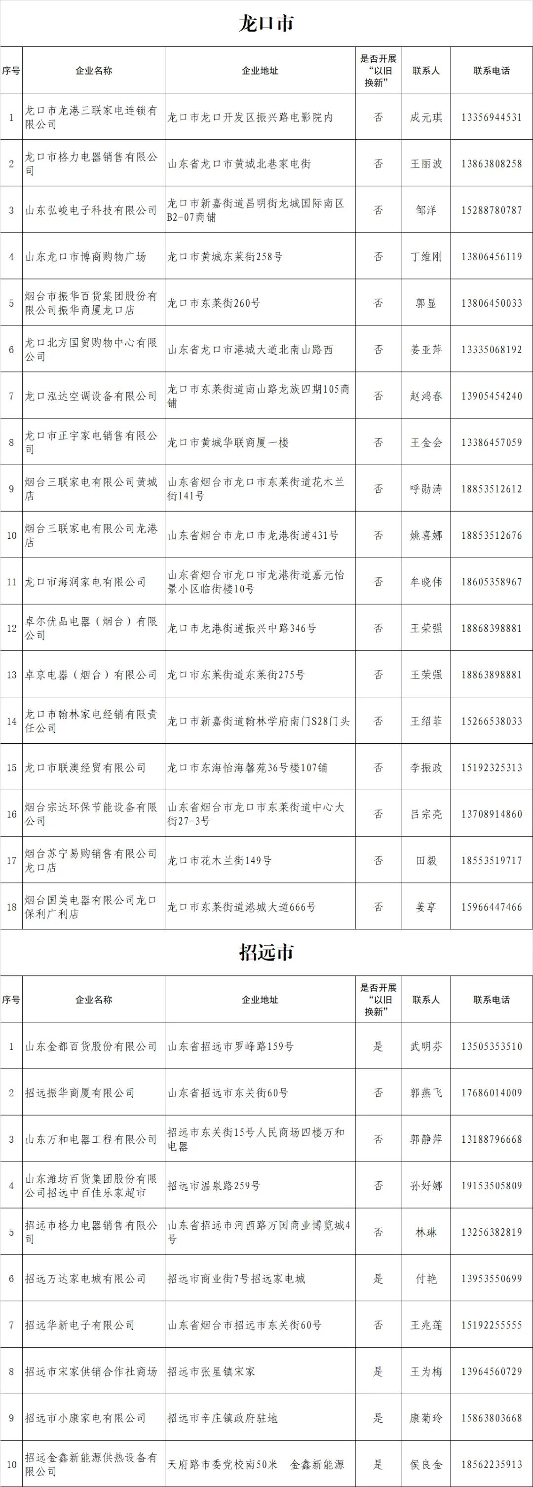 烟台市家电消费券参与企业名单公布