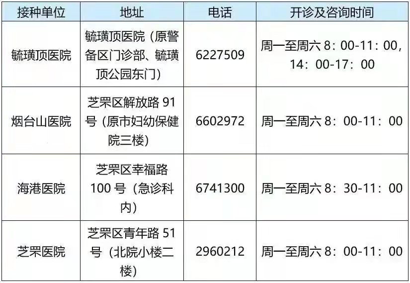 烟台芝罘区最新新冠病毒疫苗接种点公示