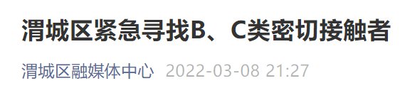 请以上时间段与该B、C类密切接触者同时间、同空间有交集的人员,立即向所属街办、社区(单位)报备,配合渭城区疫情防控指挥部做好隔离、个人核酸检测、健康监测等相关措施。