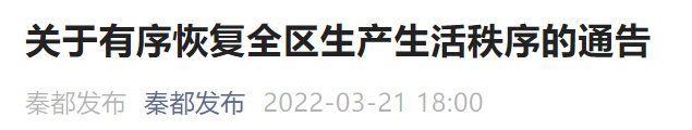 秦都区自2022年3月21日零时起:
