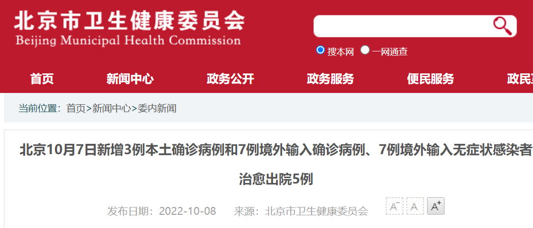 确诊病例7:中国台湾籍,10月5日从中国台湾到达北京首都机场,经闭环管理送至集中隔离酒店,10月6日诊断为无症状感染者,10月7日诊断为确诊病例。
