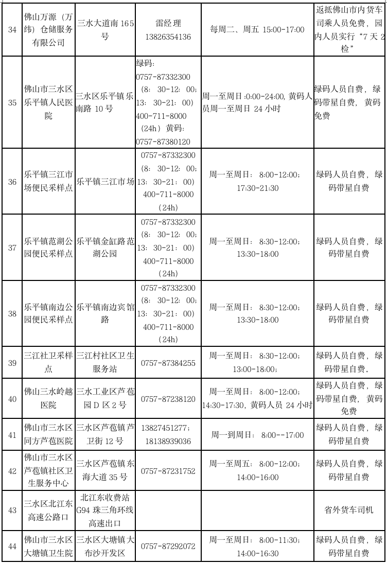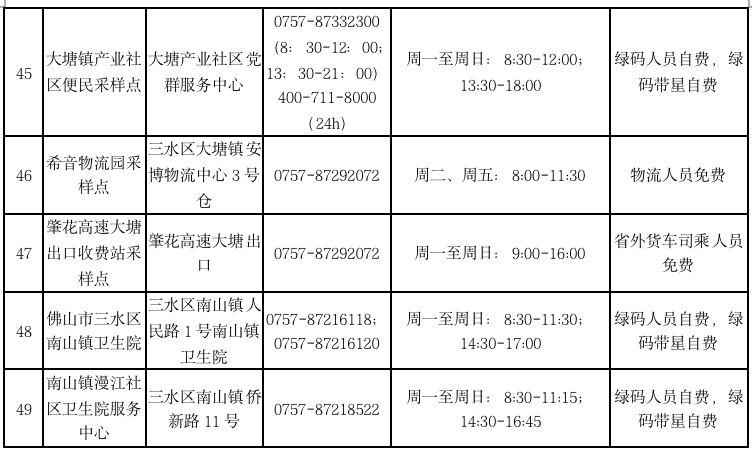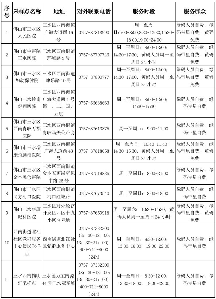 相比此前,三水区人民医院核酸检测采样点时间有调整:
