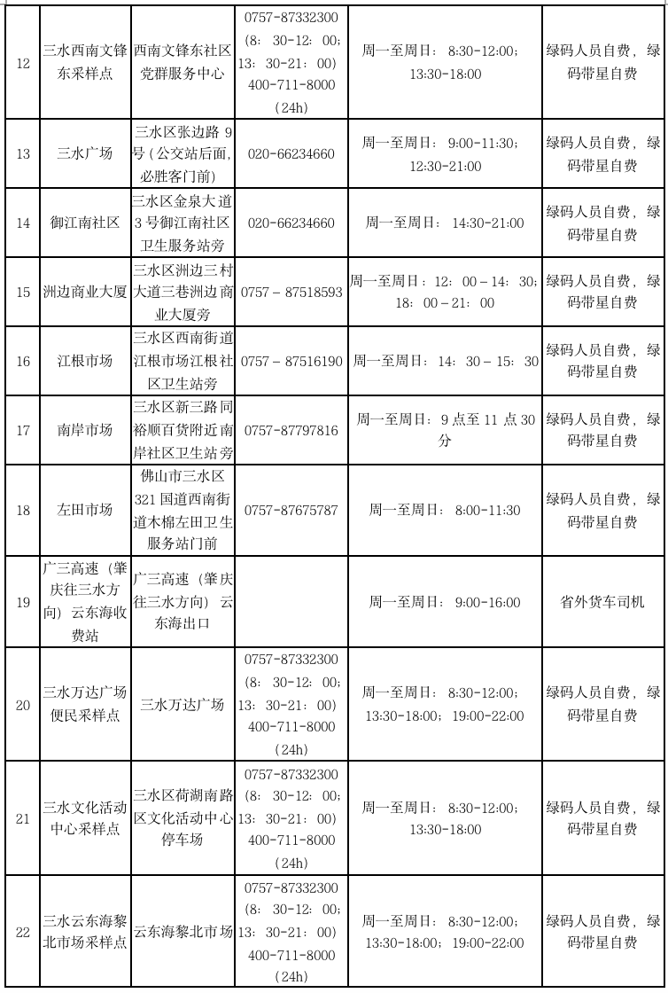 2022年5月26日,佛山市三水区新冠肺炎防控指挥办新冠病毒检测工作专班发布通告,调整部分便民核酸检测采样点服务
