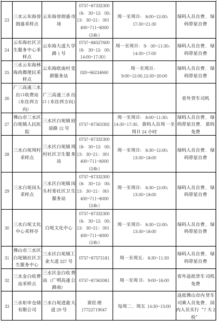 相比此前,三水区新增西南街道文锋东采样点、云东海誉朗盛采样点2个采样点,更好满足群众核酸检测需求。