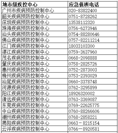 相关阅读:广东省各地疾控中心联系方式: