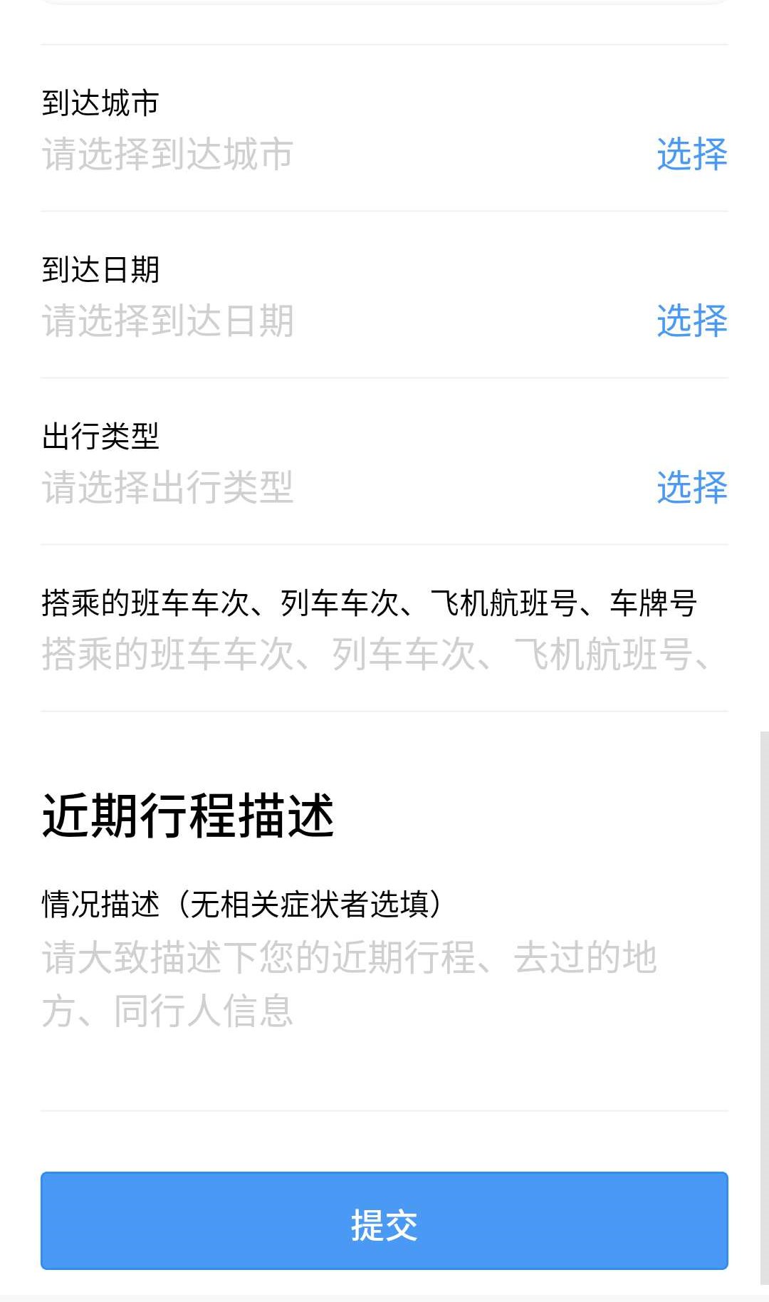 4.填写个人体温以及最近动向情况,填写完成,提交即可。