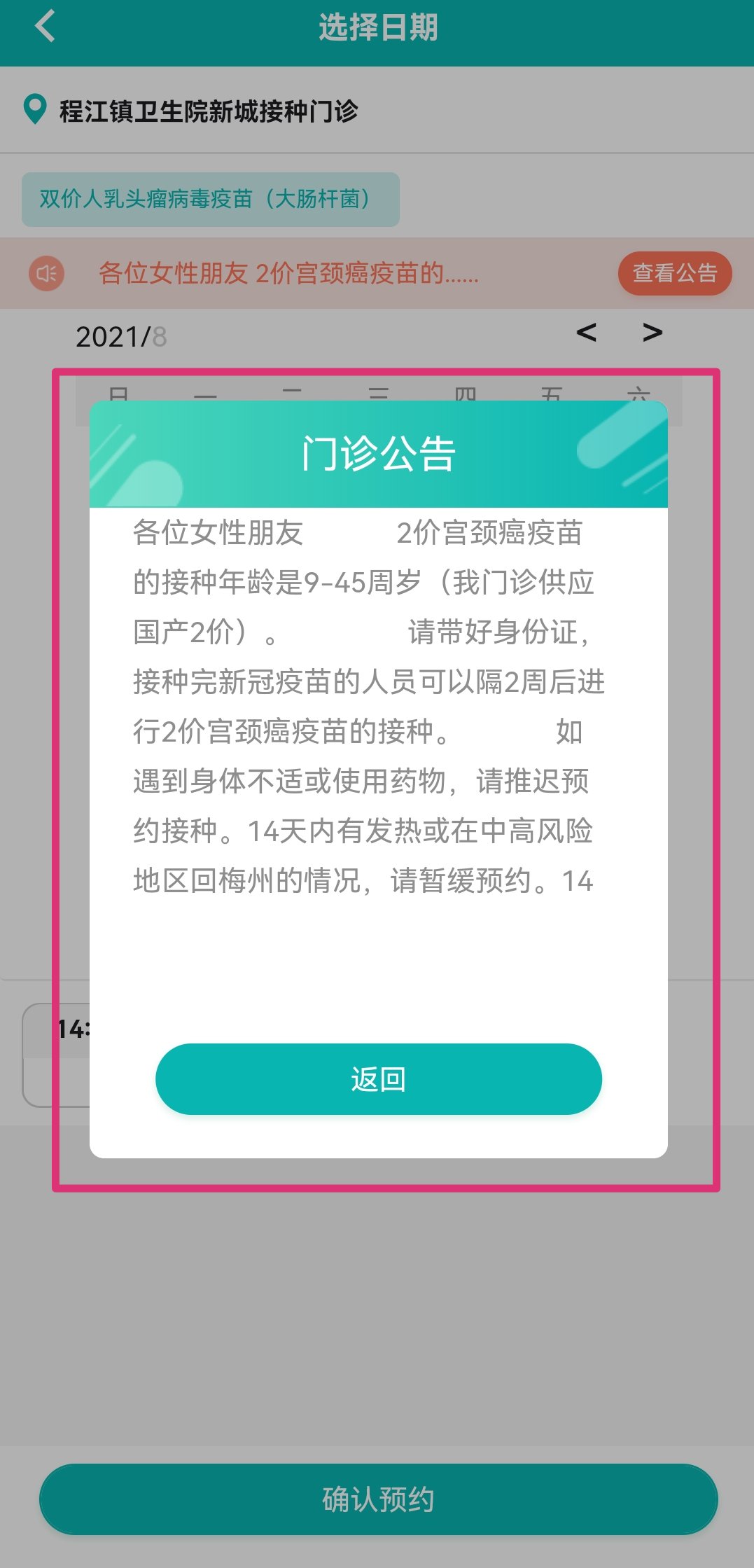 4、预约前请查看医院公告,查看完毕后选择日期以及预约时段后确认预约