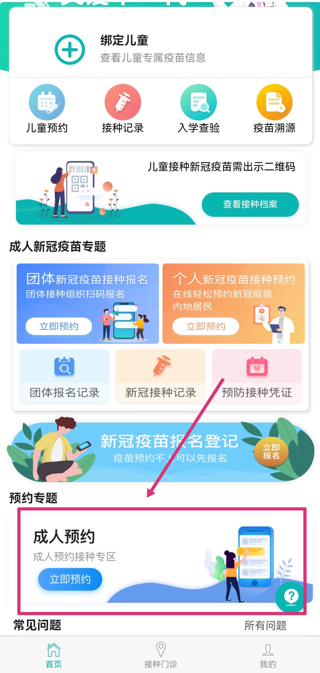 1、下载【粤苗APP】,进行实名认证登录,登录后在首页找到【预约专题】——【成人预约】,点击进入