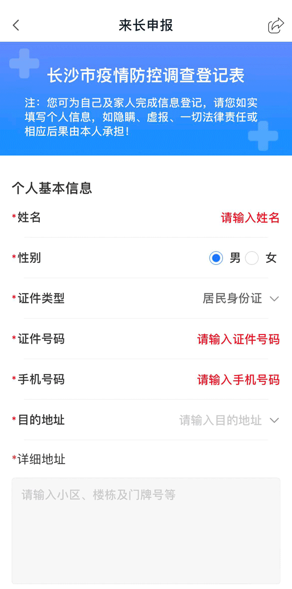 长沙市疾控中心提醒:所有来(返)长人员,必须至少提前1天通过“我的长沙”APP或“我的长沙”小程序报备。主动履行个人防疫责任,配合做好疫情防控措施。对瞒报、谎报个人行程和健康状况的,将可能承担相应法律责任。