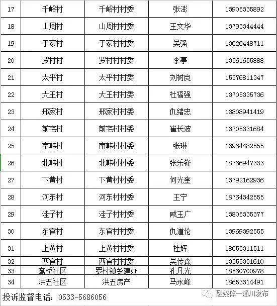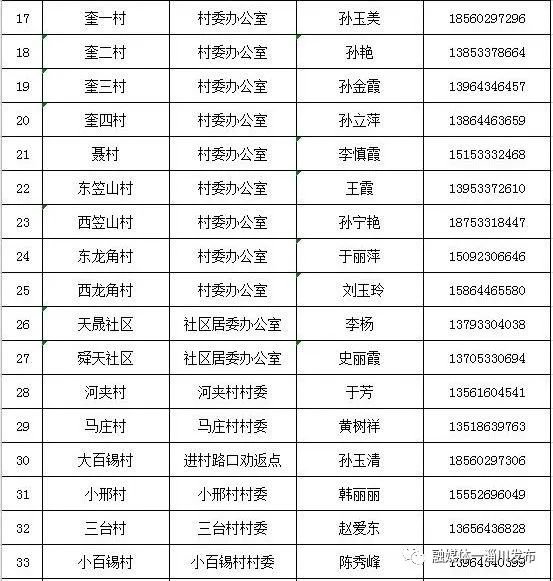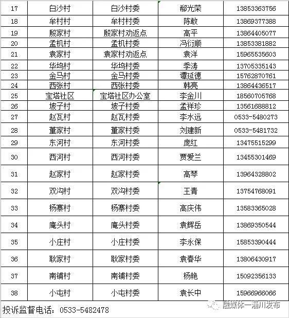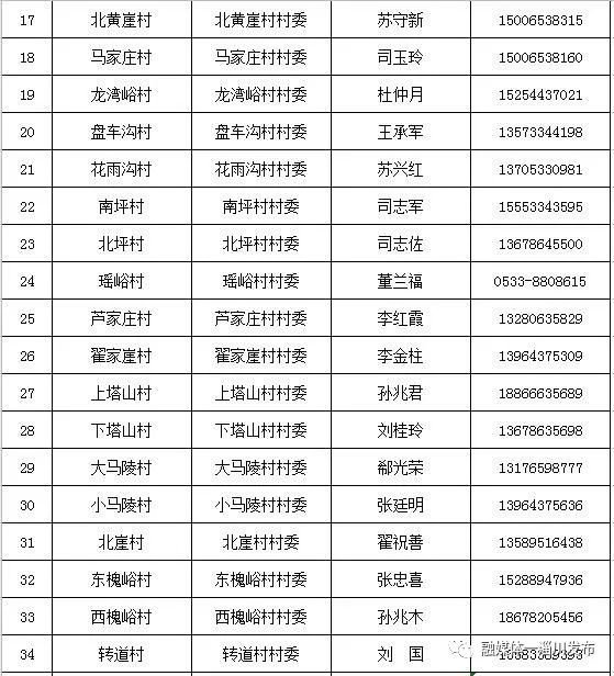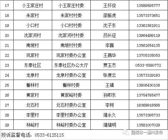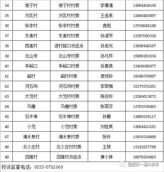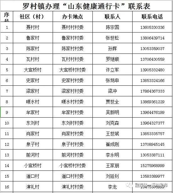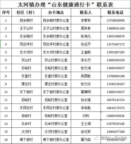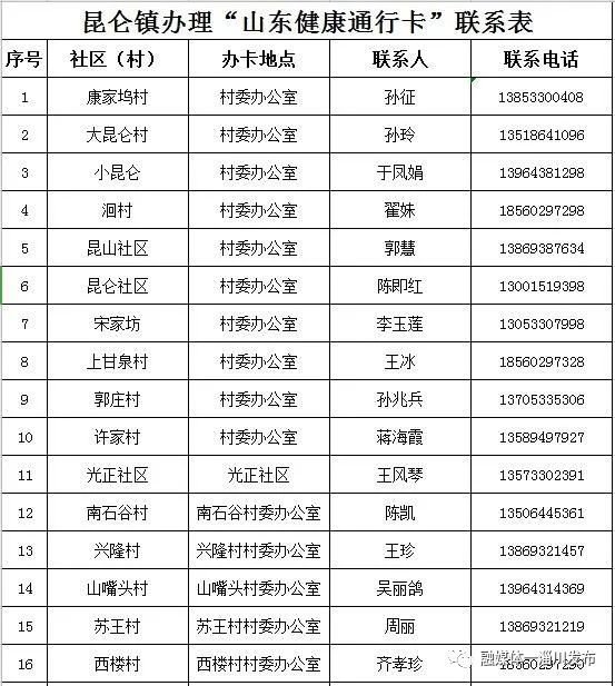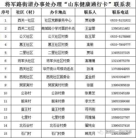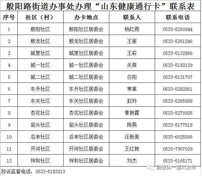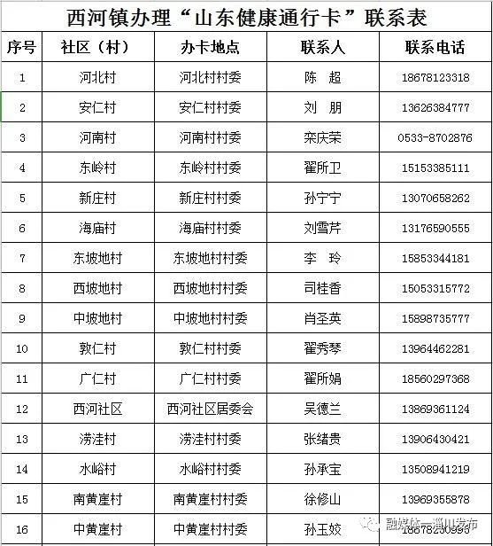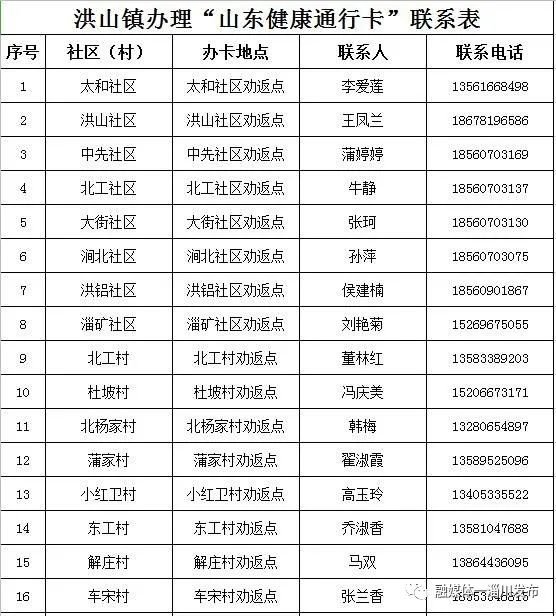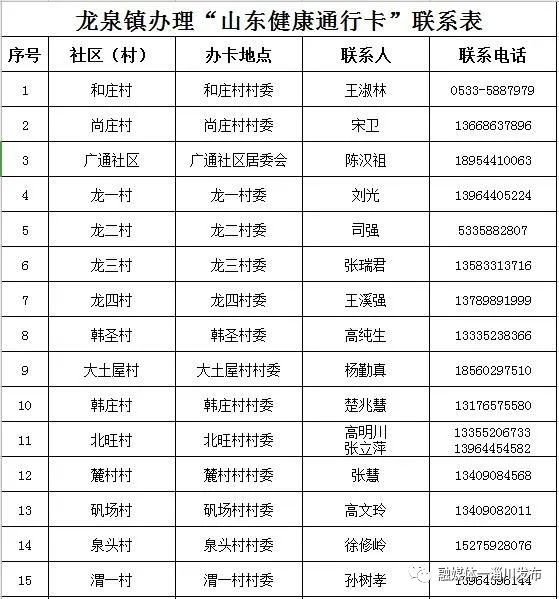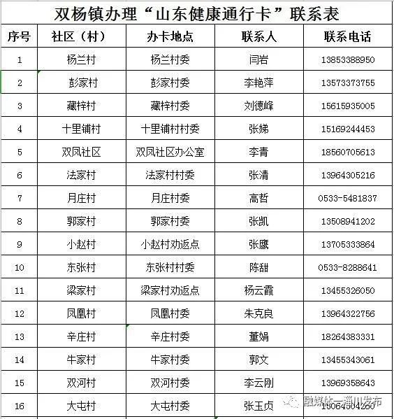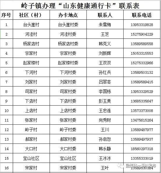 淄博淄川区各镇(街道)、社区(村)办理山东健康通行卡(码)联系表