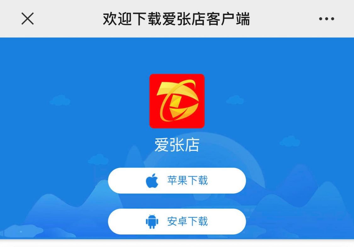 (1) 下载爱张店app,手机会显示欢迎下载爱张店APP界面,请用户根据手机的类型选择苹果系统或安卓系统下载方式进行下载。